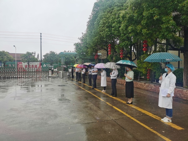 当天,德恒校园里流连春光,舍不得凋零的几支紫荆花被南国的骤雨击落一地,落英缤纷,美丽极了。下午2:00,德恒学校全体行政满怀信心在校门口列队迎接市高三、初三复学防控工作专班的到来。2:30左右,市教育工委廖诚副书记带领的验收专班,在民众镇党委刘钊妍委员和民众镇教指中心黄海文主任的引领下,来到德恒学校。一行人在学校门口测完体温和进行必要消毒后,随即开始了对德恒学校高三、初三复学防控准备工作的实地查验。验收专班一行人首先来到学校健康观察室,查看了观察室的防疫物质配备,检查了消毒通风情况。接着来到学生宿舍,看到德恒学校学生宿舍干净整洁,通风良好,了解了学校初三、高三学生全部寄宿,每间宿舍只安排三名学生等情况。随后查看了食堂操作间和学生餐厅,他们不仅对食堂的整洁规范给予了高度评价,还特别对学校安排班主任和行政陪同就餐管理学生的这个细节提出了赞赏。再接着一行人查看了学校保健室、防疫物资储备室、教室。最后,就地在备用教室召开了反馈会。在会议中,廖书记说,他几年前来过此地,但当时还不叫德恒学校,今天再到这里,他对德恒兆业教育集团接收这所学校后带来的巨大变化感到惊喜和意外。他同时强调,德恒学校这次高三、初三复学防控准备工作完成得非常好,要学校及时总结做法和经验,并将其推广到后续其他年级的复学防控准备工作中,甚至要在民众镇乃至中山市加以推广,并最后激励德恒全体行政要再接再厉。