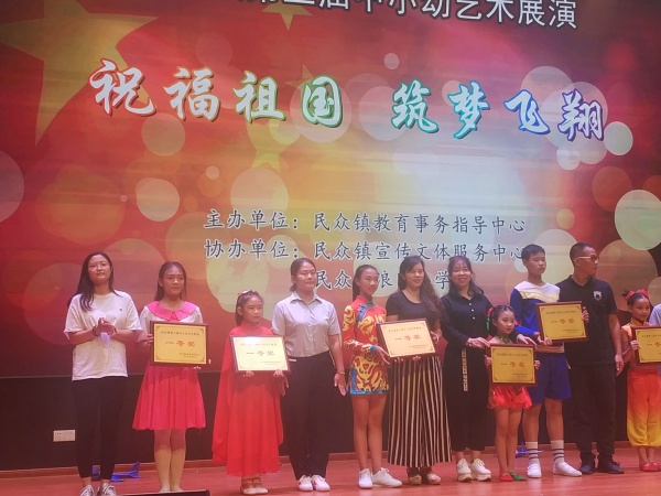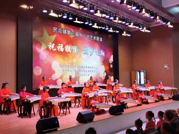 为庆祝新中国成立70周年,弘扬爱国主义精神,全面实施素质教育,充分展现民众镇中小幼艺术活动成果,民众镇教育事务指导中心于10月28日14:30在浪网小学举办了主题为“祝福祖国,筑梦飞翔”的第三届中小幼艺术展演。全镇9所中小学和4所幼儿园参加了本次活动。德恒学校精心准备,选送了最具学校特色的古筝演奏《爱我中华》参与本次展演。德恒学校的古筝演奏作为本次展演的开场节目,一经亮相,立即引爆全场。学生高超娴熟的演奏技巧,令在场观众无不瞠目;悠扬婉转的曲调似一阵春风,无不令人陶醉。最后凭借孩子们的精彩表现,德恒学校再一次夺得民众镇艺术展演的一等奖。