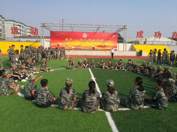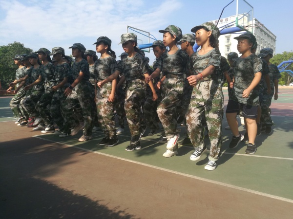 军训时间为期五天,初一学生在这五天的时间里跟随教官进行严格的训练,对着骄阳,迎着秋风,挥洒汗水。“立正、稍息、向前看齐、向左看齐、向后转、蹲下、跨立、敬礼......”伴随教官洪亮的指挥声,配上标准的示范动作,孩子们高度集中精神,严阵以待,把每一个动作练习到近乎完美的地步。“我和我的祖国,一刻也不能分割......”训练之余,孩子们、老师、教官坐在树荫之下,唱起了《我和我的祖国》,共同庆祝新中国七十华诞。夜幕降临,孩子们吃了晚饭,拿起被子,陆续来到足球场,教官手把手教孩子们叠军被,从生活小事做起,养成好的生活习惯,严格规范一言一行,争做最美德恒人。