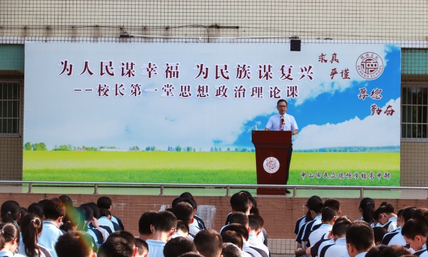 2019年9月19日,在伟大祖国即将迎来70周年华诞之际,中山市民众德恒学校高中部举行了校长第一堂政治思想理论课。高中部全体师生参加了此次活动。高中部校长宋庆忠为本堂课主讲。本堂课是回顾在中国共产党领导下的中华民族波澜壮阔的奋斗历程,展望中华民族伟大复兴的美好未来,激励广大青年学生努力学习报效祖国而开展的。