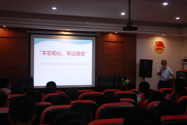 中山市民众德恒学校开展“不忘初心,牢记使命”主题师德师风教育活动发布时间:2019-09-16 21:55 信息来源:本网站 浏览次数:27