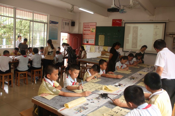 大课间活动结束之后便分别是小学的第二课堂和初中的文化课展示。小班制教学和第二课堂的开设是我校自办学以来的亮点和特色,小班化教学可以兼顾到课堂上的每一个学生,最大程度地做到因材施教,而第二课堂的开设则是现代社会素质教育和学生德智体美全面发展的需要。在第二课堂上,孩子们一幅幅优秀的作品、一曲曲精妙的弹奏频频让家长们感到惊喜,家长们对孩子一个学期以来的出色表现和巨大进步感到欣慰不已。初中的文化课上,十三位语、数、英老师创设趣味化、活动化的教学情境以及生活化、情景化的教学环境,深深吸引了每一位孩子,赢得了家长的一致好评。家长们在观摩学生的学科展示活动过程中,看到了学生的进步与成长,由衷感到欣喜。老师对孩子点点滴滴的关爱,家长们尽收眼底,感动了在座的每一个家长。