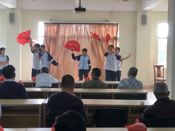 2019年3月19日上午,中山市民众德恒学校高中部团委,组织校志愿服务队前往民众镇敬老院看望孤寡老人。同学们带去了精心准备的节目和通过发动班级募捐买来的礼品,在敬老院开展了一系列活动,给他们送去一份关爱和温暖。