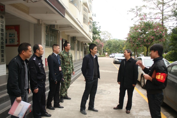 2019年1月8日,由中山市民众镇教育事务指导中心牵头,联合民众镇消防大队、民众镇交警大队,食药监、安监等部门相关领导莅临德恒学校,对德恒学校的安全工作进行监督检查,确保年关的平安顺利。