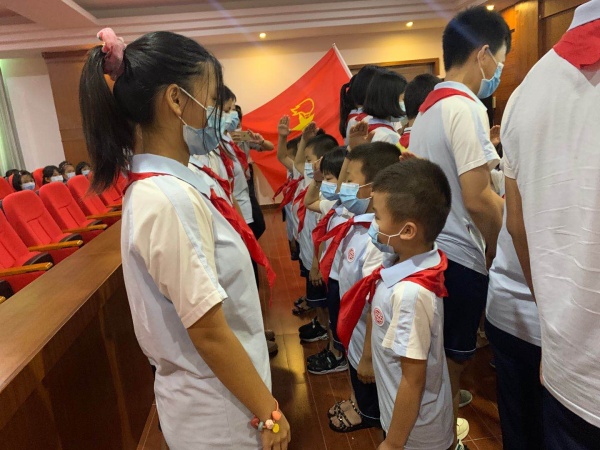 庄严的入队仪式让全体少先队员接受了深刻的教育,队员们在火红的队旗下受到了心灵的洗礼。这次活动,使少先队员明确了肩负的光荣使命,坚定努力学习、勇敢追梦、为祖国的强大作贡献的决心,达到了很好的教育目的。相信少先队员们一定会严格要求自己,从小做起,一点一滴积累成为一个好思想、好品德的少先队员!