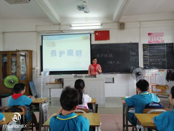 新冠肺炎疫情下,学校进行了线上授课。网络课程学习时很多学生使用手机、电脑、电视等电子产口进行学习,导致眼睛疲劳,影响视力,有的还患上了近视眼。为此,民众中心小学利用班会课的时间,班主任和同学们一起上了一节保护眼睛的班会课,希望学生能认识到眼睛的重要性,从而自觉保护眼睛。减少近视的发生。