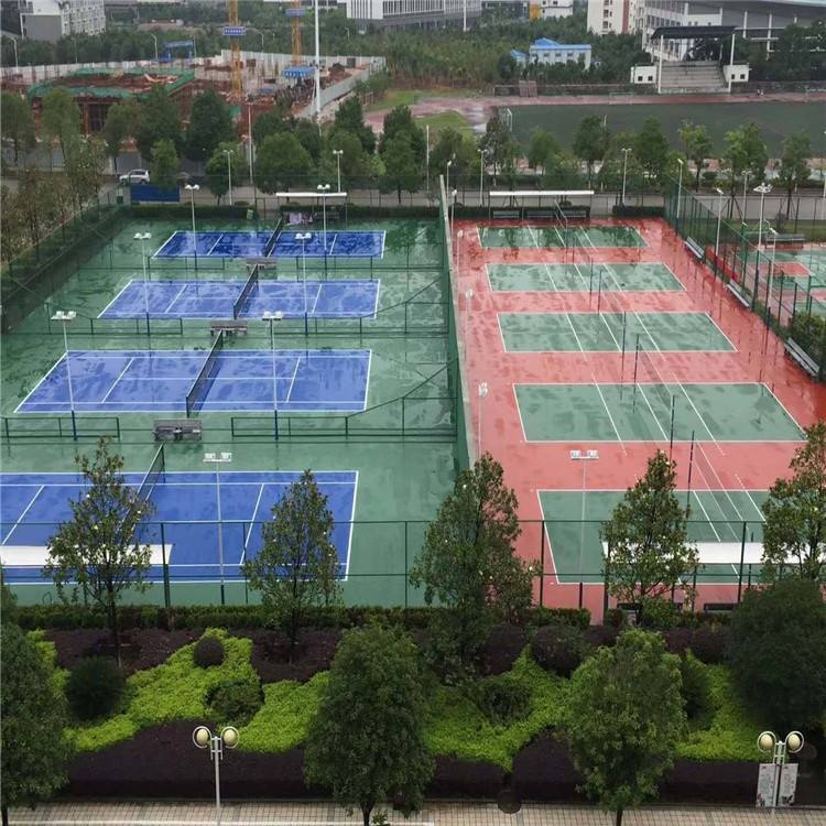 ??抗污性:硅PU面层坚韧、密实,不易被鞋底或其它硬物刮花,通过简易的冲洗即可长期保持球场光洁如新。