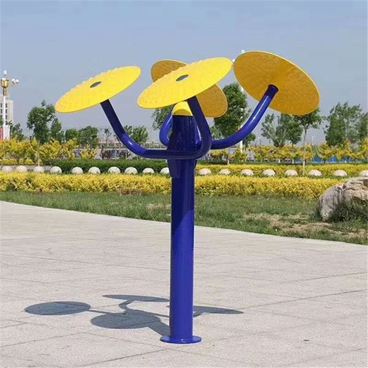 ??7、三人转腰器 规格:1200x1200(mm) 功能:增强腰部、腹部肌肉力量,改善腰椎及髋关节柔韧性、灵活性,利于健美体形 。