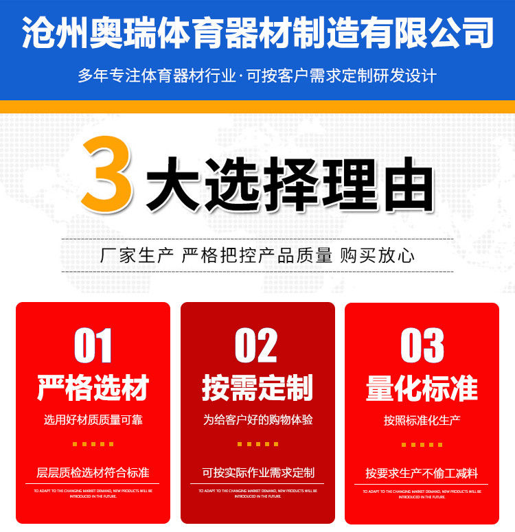 ,沧州奥瑞体育器材制造有限公司拥有一批素质高的管理人才,配备了成套的先进设备,建立了科学的生产