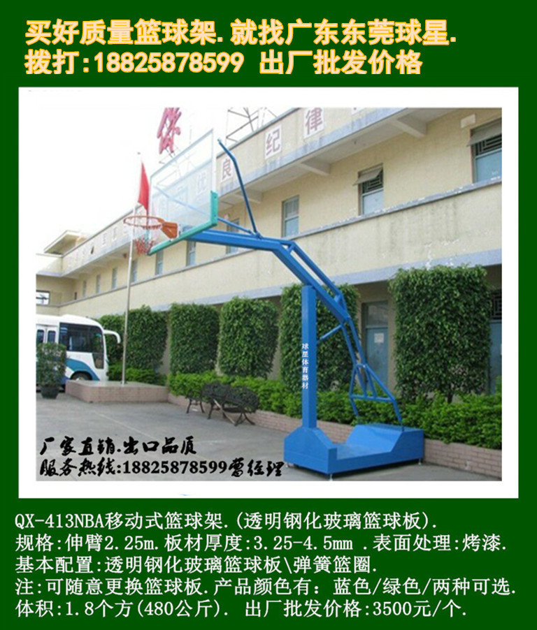 篮球架系列产品颜色为:绿色、蓝色、可选.可根据用户需求改变颜色,产品在没有特别说明的前提下默认为根据库存随机从绿、蓝两种颜色中随机抽取发货。