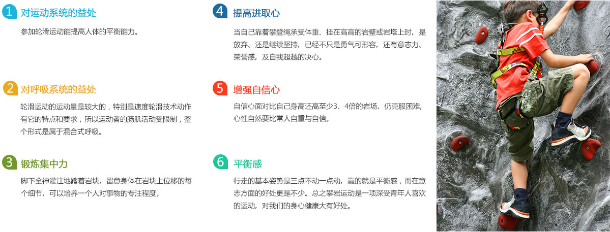 ●用于培养大学、中学生毅力和心里素质的教学岩壁。