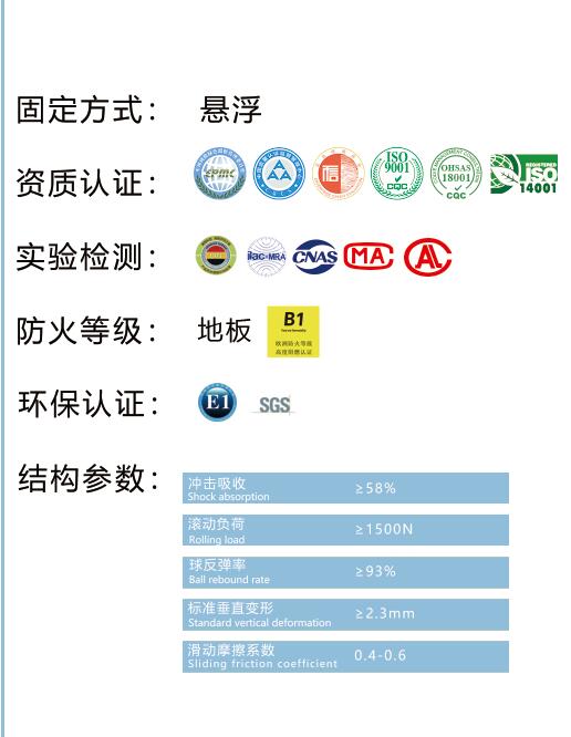 面层:俗称地板层,主要作用为承载重力,对防滑、耐磨性要求极高(图例中为实木多层枫木地板。支持定制) 定制高压承载板层:俗称毛地板,主要作用为承载重力和压力,需要较好的抗冲击和震动吸收能力(图例中为环保E1级定向防水欧松板。支持定制)