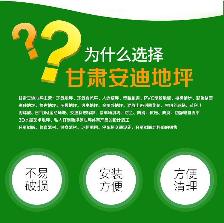 经营范围:环氧地坪、环氧自流平、人造草坪、塑胶跑道、PVC塑胶地板、楼梯踏步、彩色路面、彩砂地坪、复古地坪、压模地坪、透水地坪、金刚砂地坪、混凝土密封固化剂、室内外球场、硅PU、丙烯酸、EPDM运动场地、交通标志标牌、停车场划线、防尘、防滑、抗压、防腐、防静电自流平、3D水墨艺术地坪、私人订制地坪等地坪体育产品的设计施工;环氧树脂、体育器材、健身器材、球场围网、停车场交通设施、环氧树脂地坪漆的销售。