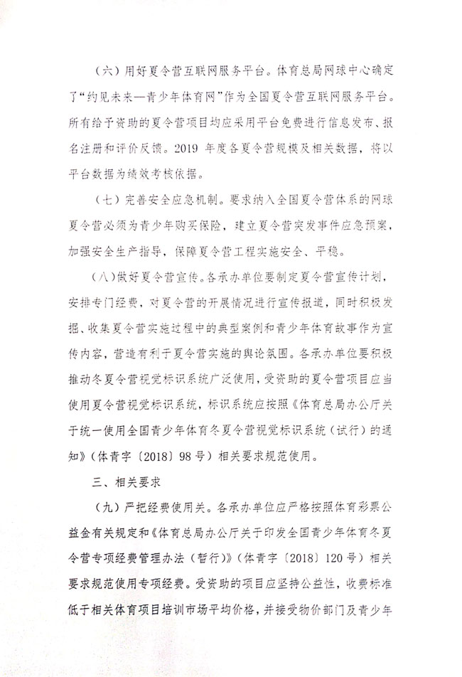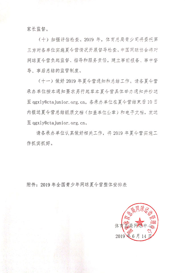 关于做好2019年全国青少年网球夏令营相关工作的通知