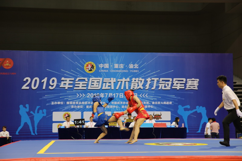 7月17日,2019年全国武术散打冠军赛在重庆市渝北区体育馆顺利开幕。该赛事由国家体育总局武术运动管理中心、中国武术协会、重庆市体育局、重庆市渝北区人民政府主办,重庆市武术运动管理中心、渝北区体育事业发展中心承办,共有来自全国各省(区、市)44支代表队277名运动员参加。