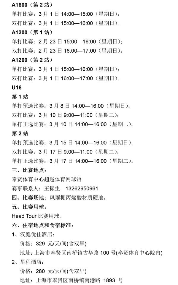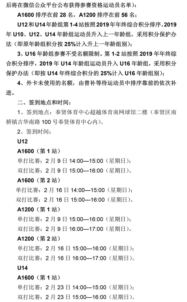 2020年全国青少年网球积分排名系列赛(奉贤站)补充通知
