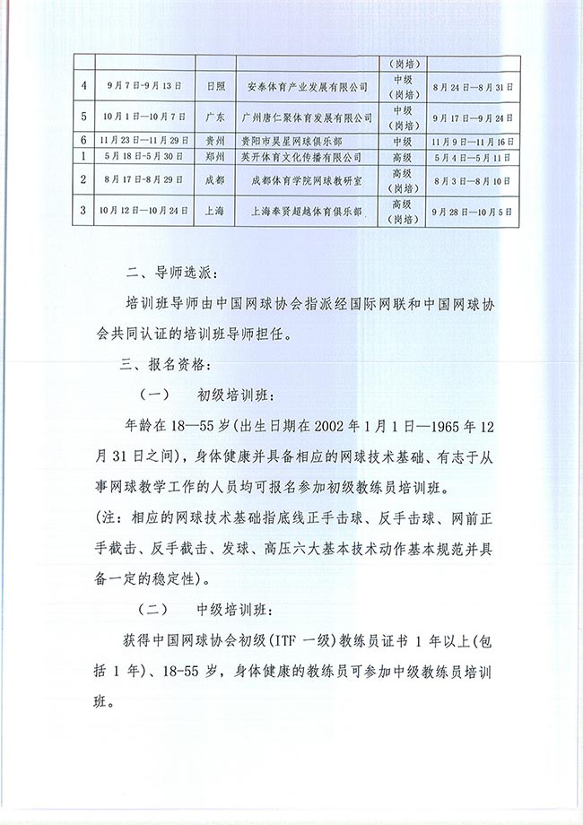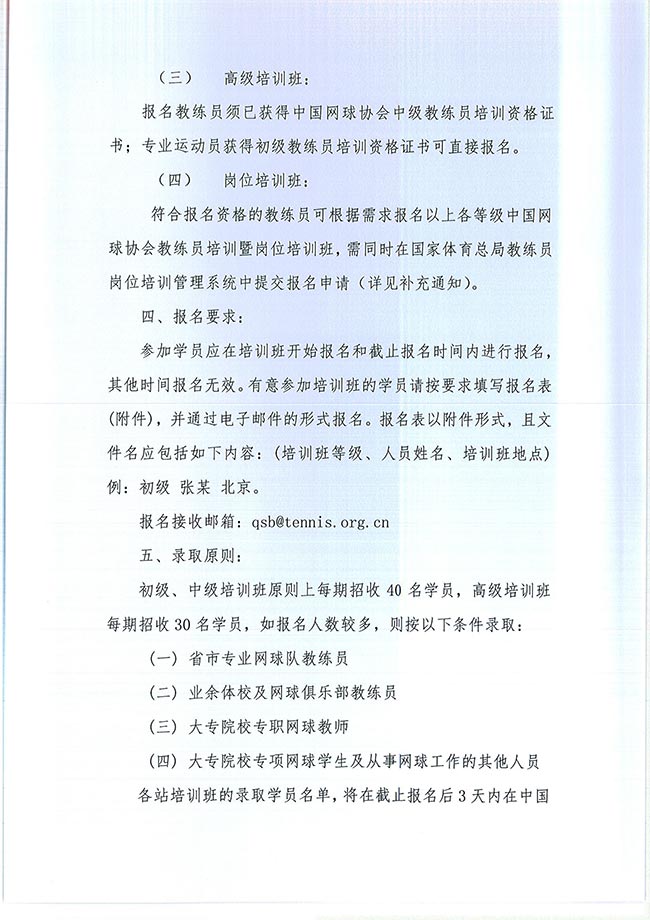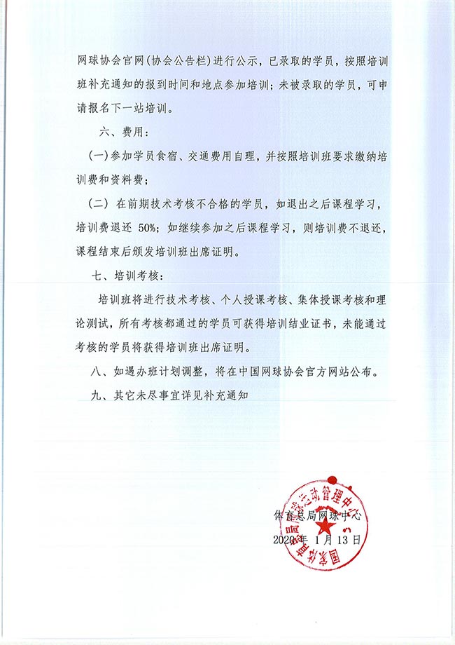 关于举办2020年中国网球协会等级教练员培训班的通知