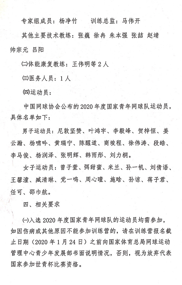 2020年全国青少年网球U系列赛初始积分排序(公示)