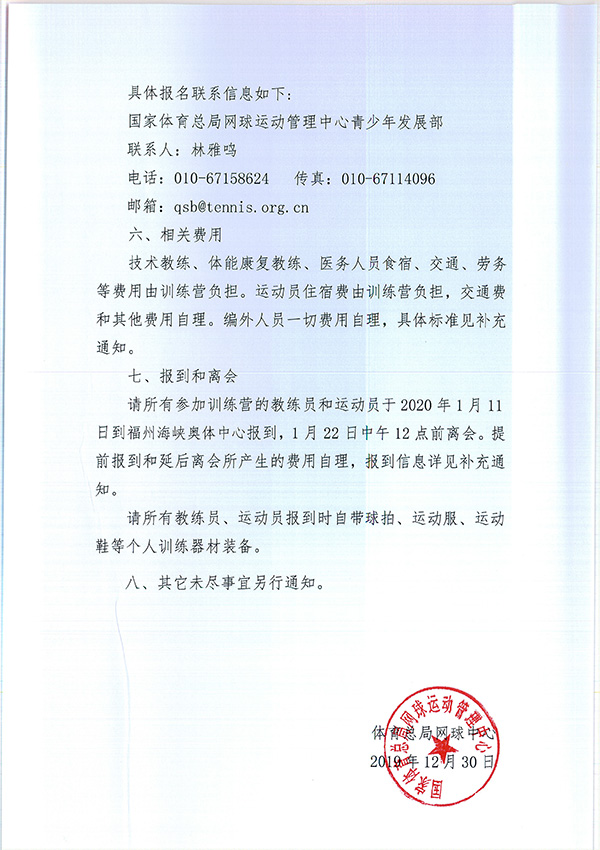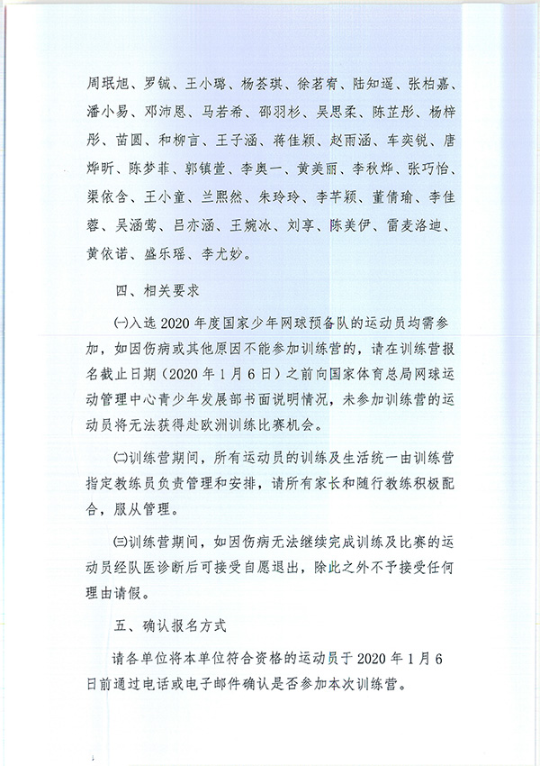 关于公布2020年国家青少年网球队相关人员组成名单的通知