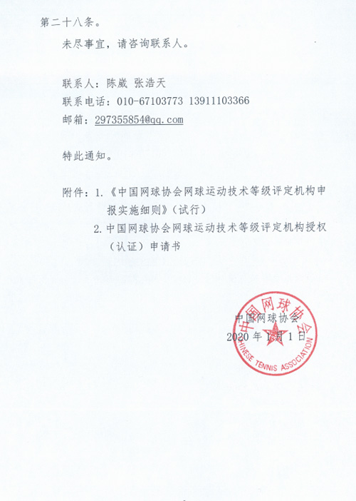 1.中国网球协会网球运动技术等级评定机构申报实施细则(试行)