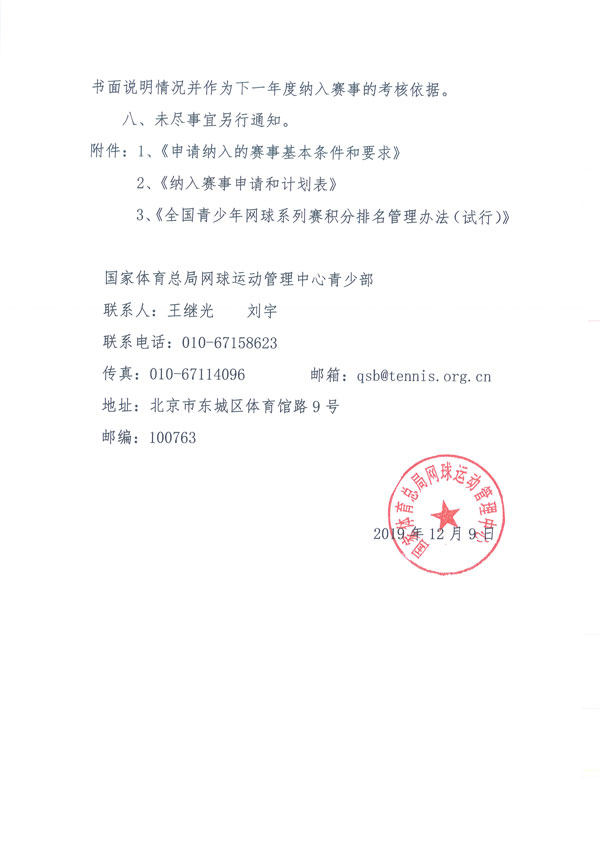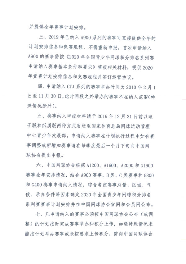 关于公开征集纳入2020年全国青少年网球积分排名系列赛赛事计划的通知
