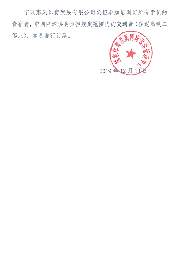 关于参加首届中国网球巡回赛赛事监督培训班的补充通知
