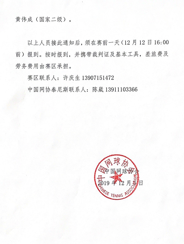 2019-12-11 09:06:00 中国网球协会