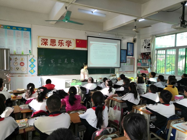 为普及宪法知识,弘扬宪法精神。12月4日,中山市南朗旗风学校以“国家宪法日”为契机,以宣讲宪法基本原则和基本知识为重点, 开展了学习宪法宣传教育系列活动。
