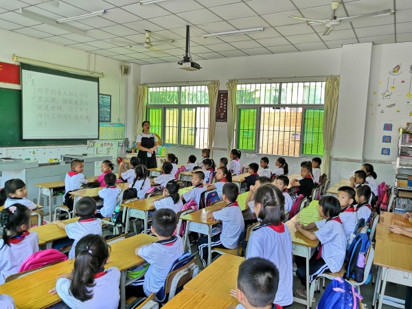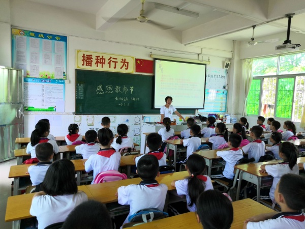 活动二:9月9日,南朗旗风学校开展“感恩教师节”为主题的班会课活动,班主任不仅带领学生学习教师节的由来,还通过讲解教师的多重身份,如“警察”、“主持人”、“演员”等不同角色,让学生理解教师的艰辛、不易;列举了部分从古今感人的教师事迹,让学生感受教师的伟大、无私。最后,让学生聆听一首《每当我走过老师窗前》,向教师表达自己的祝福,不少学生听着听着,不由自主地跟着唱起来了,学生动听的歌声中,传送的是他们对教师最真挚的祝福。