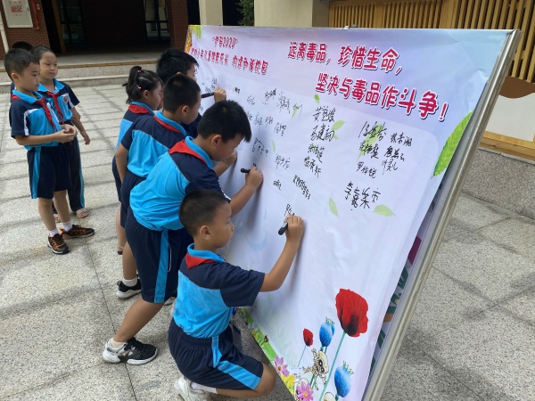6月24日大课间时间,在学校中庭开展2020年“书香校园·护苗·禁毒·绿书签行动”禁毒宣誓、签名承诺活动,由大队辅导员叶老师带领全校师生禁毒宣誓,接着分班进行签名。下午,“让祖国花儿更鲜艳”马岭小学讲故事比赛在多媒体室举行,同学们表现非常精彩。