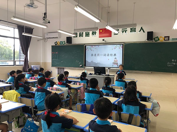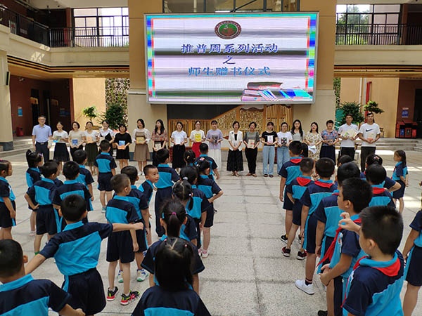 在“诵读经典”这一活动中,学校倡议各班利用午读的时间,让师生参与诵读经典,通过师生朗读诗歌的形式带动大家对诗歌学习的兴趣,感受诗歌的节奏。此外,学校还进行师生赠书仪式,鼓励老师多读书,多分享,共成长,与学生一同参与到“悦读”之中。