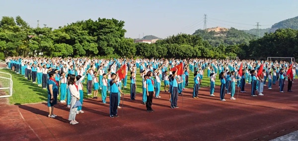 早晨,伴随着冉冉升起的太阳,全体师生在操场举行升国旗仪式,国旗在庄严的气氛中徐徐升起,在队员们的嘹亮的国歌声中飘扬。升旗仪式结束后,由四1中队进行主题为《队知识教育》的国旗下讲话,队员们在听的过程中重温队知识。接着学校大队长带领中队长进行出队旗仪式,全体少先队员行队礼,唱队歌。队歌结束后,学校少工委主任向全体队员传达了《习近平总书记致中国少年先锋队全国代表大会的贺信》精神,少先队代表给队员们讲了先锋故事,队员们听了雷锋和钟南山的故事后,受到很大的触动。接着大队辅导员就中国少年先锋队建队71周年进行讲话并带领全体队员呼号:准备着,为共产主义事业而奋斗,全体队员回答:时刻准备着。呼号结束后进行退旗仪式,全体队员敬礼。早上的活动由此结束。