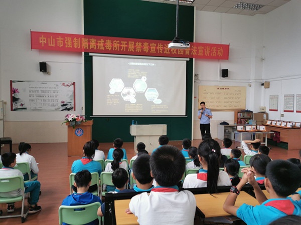 为加强青少年禁毒教育,引导青少年认识毒品危害,有效预防青少年涉毒违法犯罪,10月27日下午,中山市强制隔离戒毒所走进北台小学,为师生们开展了以“拒绝毒品,珍爱生命”为主题的禁毒宣传进校园普法宣讲活动。