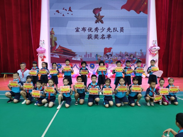 上午10点,全校师生在体育馆开展“迎接少代会、争做好队员”“六一”主题教育活动。活动中,队员们汇报了“广东红领巾致敬逆行先锋”活动成果,有的队员表演了《预防病毒拍手歌》,有的队员展示了“同心战疫”绘画作品,接着进行了最激动人心的“抗疫小卫士章” 颁章活动以及同学们期待已久的“六一”文艺汇演。