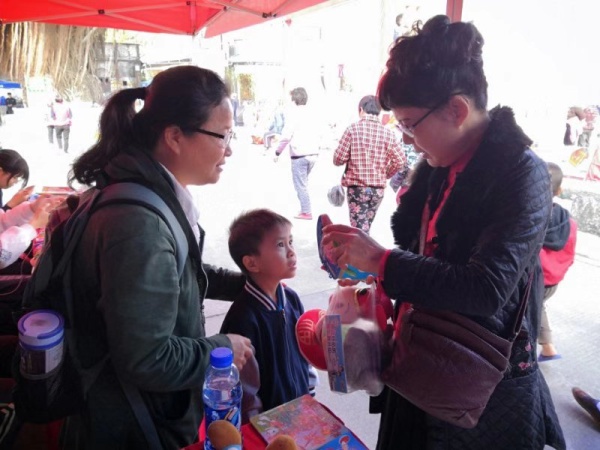 本次活动,该校派出一年级4班的四对亲子义工家庭参加。当天早上8点半,天气微寒,但是学生与家长却十分热情高涨,他们早早地来到义卖活动现场布置相关物品,使得义卖活动得以顺利地进行。