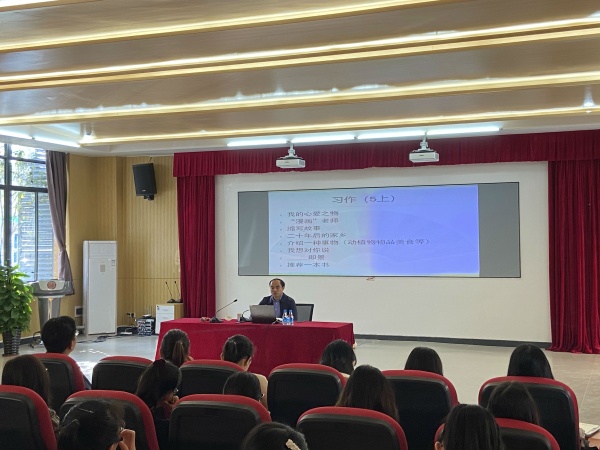 本次活动意义重大,除了对前期刘向梅校长带来的团队研讨以及思维导图教学模式的总结,还邀请了华南师范大学硕士生导师张永璟教授作专题讲座。首先由马岭小学语文科组长何玲珑老师宣布活动开始,并对张教授进行介绍。接着,张教授为在座的老师进行《写作与中小学语文教师的专业成长》专题讲座,他提出了写作要进行读写结合建模,并通过结合不同学段的课文,分别从写作的拟题、开头、展开主体、谋段、用好词好句、切题、扣题、点题以及结尾等方面进行详细的阐述。此外,张教授还围绕如何评改学生作文、教学与科研以及如何把课上好等方面进行了讲解。现场的老师还提出教学中遇到的困惑,张教授与大家进行交流并解答,让与会老师受益匪浅。