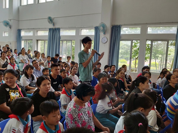 讲座中,胡宁老师以“如何激发孩子成为终生阅读者”为主题,并从三个方面对主题进行了讲解:孩子为什么不爱读书、孩子为什么要阅读、应该如何去培养孩子的阅读兴趣。她首先建议家长们对学生阅读的书目要有包容性,先激发学生的兴趣,再对阅读类型进行合理的指引。胡老师向大家展示自己的亲身经历,并通过例子说明中外阅读大环境的差异是导致孩子越阅读兴趣差异的重要原因。此外,胡老师建议,要提高孩子的阅读兴趣,家长要树立一个爱阅读的好榜样,鼓励家长走进孩子,和孩子一起阅读。现场的家长还与胡老师进行了简单的探讨与交流,胡老师对家长们提出的问题都耐心而清晰地做了分析与指导。