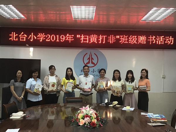 据悉,7月至10月底为“扫黄打非”工作第三阶段。9月20日,在吴燕芳校长带领下,学校全体行政向各班级赠送了一批适合新时代儿童阅读的正版书籍,引导学生正确认识“扫黄打非”的重要意义,动员学生自觉抵制淫秽色情、凶杀暴力、封建迷信等污染少年儿童身心健康,败坏社会风气的文化垃圾,坚决把不良因素赶出校园。此外,北台小学密切配合有关部门开展专项治理工作,切实增强政治责任感,密切关注校园周边“涉黄”、“涉非”动态,积极支持和配合有关部门开展对盗版教材、教辅材料的专项治理,努力营造有利于未成年人健康成长的良好文化环境和氛围。