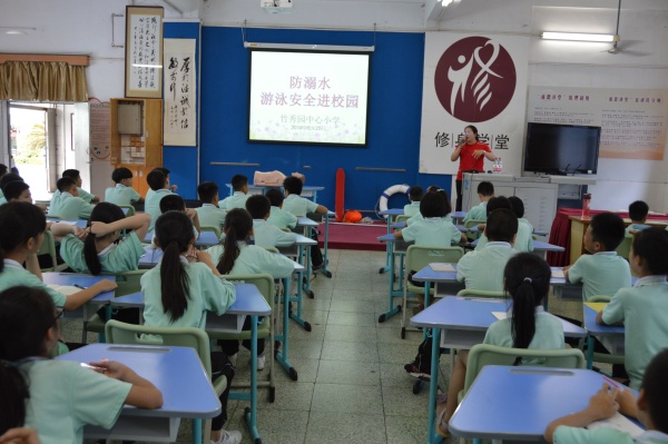 夏季是溺水事故的高发阶段,为了有效落实防溺水安全教育,在中山市游泳协会公益讲师团的组织下,毕教练为竹秀园中心小学的学生上了一堂生动形象的游泳安全与他救自护课。区教育指导中心罗洪副主任,竹秀园中心小学李向平校长以及两百多名学生认真聆听了这次讲座,初步掌握了救生的技巧与注意事项。
