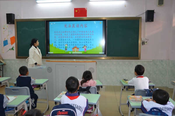 12月4日是第六个“国家宪法日”,良都小学各班班利用早上第一节课进行“宪法晨读”活动。各班主任带领学生朗读宪法内容,除此之外,老师们还根据小学生的年龄和心理特征,结合涉及未成年人的典型案例,以通俗易懂的语言,采取以案说法的方式,深入浅出地阐释了什么是宪法、为什么要学宪法和宪法如何渗透到生活的方方面面。每一个小案例都让学生深受启发,引导同学们在平时的生活中从小事情开始学习法律,遵守法律,用法律武器维护自身的合法权益。