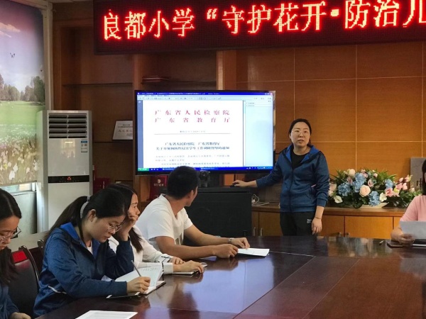 除了主题班会的开展,良都小学在上周五也组织全体教师学习《开展“守护花开”防治性侵害未成年人犯罪专项行动的实施方案》文件精神,会议由吴丽欢副主任主持。吴主任强调各位老师应该加强对学生防性侵宣传教育,提高学生防性侵意识,做到防患于未然,切实保障学生自我安全。