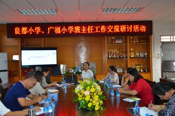 10月25日下午,板芙广福小学所有班主任在苏雪霞校长和黄锦副校长的带领下来到南区良都小学进行班主任工作交流研讨。