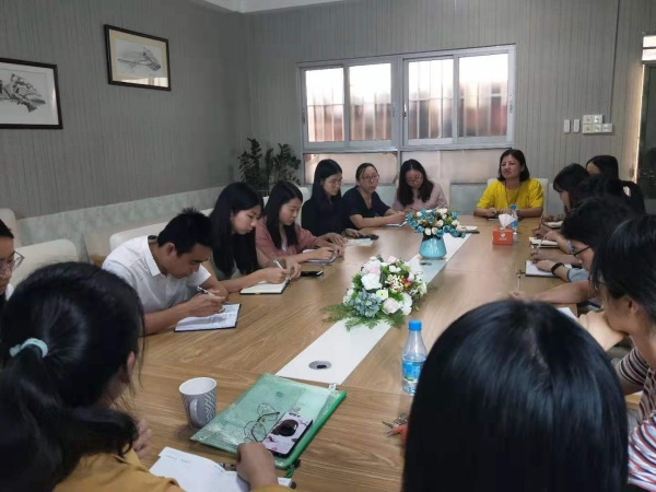 会议开始,首先各位新教师就入职以来的进步与不足或近段时间教育教学中遇到的难题、困惑等进行了分享。各教师分享后,陈莉江主任对新老师提出疑问和认真反省自己的态度表示高度欣赏。同时,陈主任还对新教师提出了以下几个方面的要求:一是落实常规教学;二是鼓励新老师积极主动学习来提升自我,珍惜每次外出学习机会,并且指出新教师对待教师职业要有情怀,要有追求,在教育教学的路上不能懈怠,也鼓励新教师积极参加各种教学比赛来提升自己的教学能力。吴丽欢主任也在会上发言,她的语言幽默并具有感召力,号召年轻老师们积极进取、大胆创新,让青春在奋斗中散发光彩。