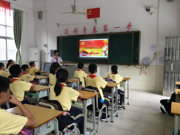 在“习爷爷教导记心中”的主题队会上,辅导员们向队员们介绍实现中华民族伟大复兴重任,就是实现中华民族近代最伟大的中国梦,这个梦想凝聚和寄托了几代中国人的夙愿,体现了中华民族和中国人民的整体利益,它是每一个中华儿女的共同期盼。接着,辅导员引导队员学习习近平总书记的希望和要求,把习总书记治国理政的大道理转化为队员们能够理解的小道理,把习近平总书记工作和成长的点滴转化为启发孩子们心灵的生动小故事。通过一个个生活小故事,孩子们牢记了习近平总书记“从小学习做人、从小学习立志、从小学习创造”的谆谆教导,从小树立远大理想,培养良好志向,听党的话、跟党走,努力成长为德智体美全面发展的社会主义合格建设者和可靠接班人。