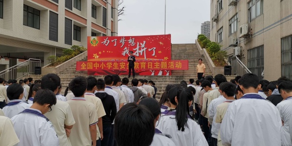 今年3月的最后一个周日是全国中小学生第24个安全教育日。3月29日上午,良都中学邀请了南区公安分局的李警官在学校金色太阳广场的升旗台前跟同学们作安全教育。