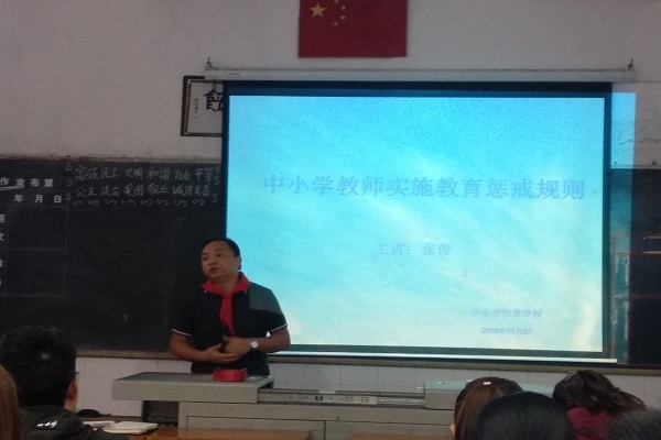 恒美学校开展《中小学教师实施教育惩戒规则》主题学习活动发布时间:2019-11-28 19:04 信息来源:本网站 浏览次数:0