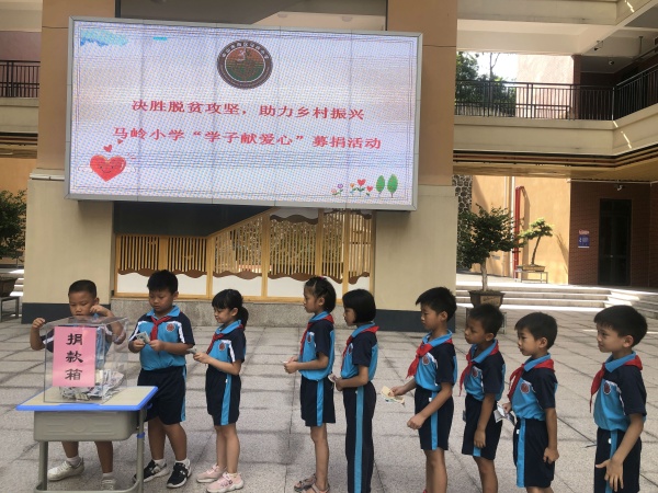 2020年,是全面建成小康社会目标实现之年,是全面打赢脱贫攻坚收官之年,也是“广东扶贫济困日”活动10周年。根据省、市工作部署,6月17日上午马岭小学在校园内开展主题为“决胜脱贫攻坚,助力乡村振兴”的募捐活动。