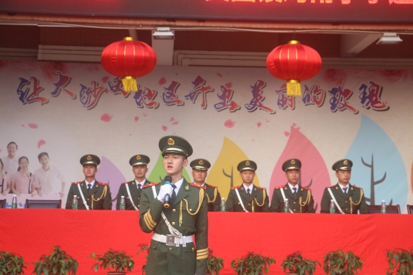 为热烈庆祝中华人民共和国成立70周年,进一步激发广大师生的爱国热情,培养青少年尊重国旗、爱护国旗的情感,9月27日,黄圃镇对甫小学在黄圃优品教育协助下,邀请原武警北京总队天安门国旗护卫队退役军人举行升旗仪式。