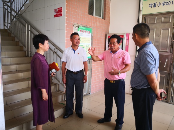 在慰问活动的最后,凌军校长与黄圃镇领导共同到对甫小学的校园内,查看校园补漏工程和围墙的修补问题,同时已经通知了相关的部门针对甫小学的修补问题做出相应的方案。