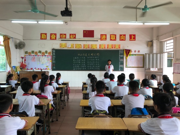 为了自觉践行社会主义核心价值观,进一步增强学生的文明意识,培养学生良好的文明行为习惯,促进“三品”校园文化的养成,引导广大师生努力践行文明公约,2019年6月24号,中山市黄圃华洋学校各班级开展了以“文明知识进班会,文明公约共践行”的主题班会。